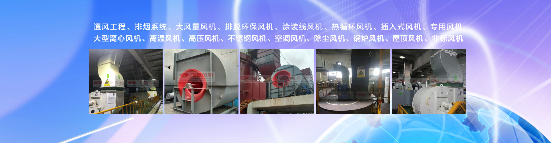 產(chǎn)品暢銷全國各地,曾配套用于國家重點工程有:北京人民大會堂、西昌衛(wèi)星發(fā)射中心、秦山核電站、南京祿口國際機(jī)場、廣州地鐵等;配套用于汽車工業(yè)的有:長春一汽大眾、上汽奇瑞、哈爾濱飛機(jī)制造廠、一汽青島汽車廠、陜西飛機(jī)制造廠、昌河飛機(jī)制造公司、上海飛羚汽車制造廠、武漢神龍、廈門金龍、南京春蘭和中集集團(tuán)等涂裝線工程,飛躍風(fēng)機(jī)在汽車行業(yè)中使用廣泛。
